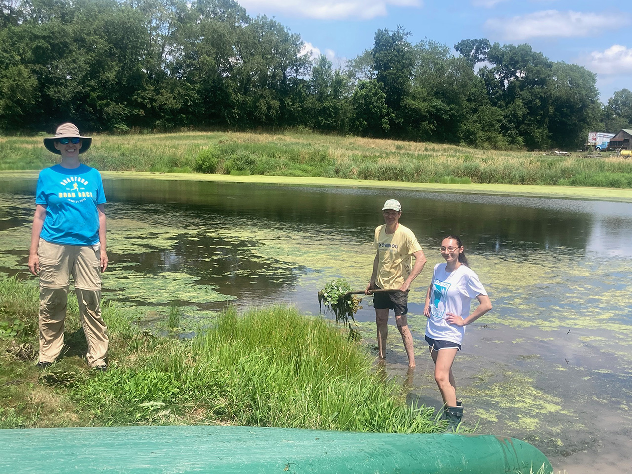 This year, between May and August, Friends of the Farm River & Estuary (FFRE) removed or eliminated 90 percent or more of invasive Eurasian Water Chestnut (Trapa Natans, referred below as Trapa) from five locations within the Farm River watershed. Together, neighbors, FFRE volunteers, and supporters volunteered more than 325 hours (the equivalent of over 8 weeks of full time work).