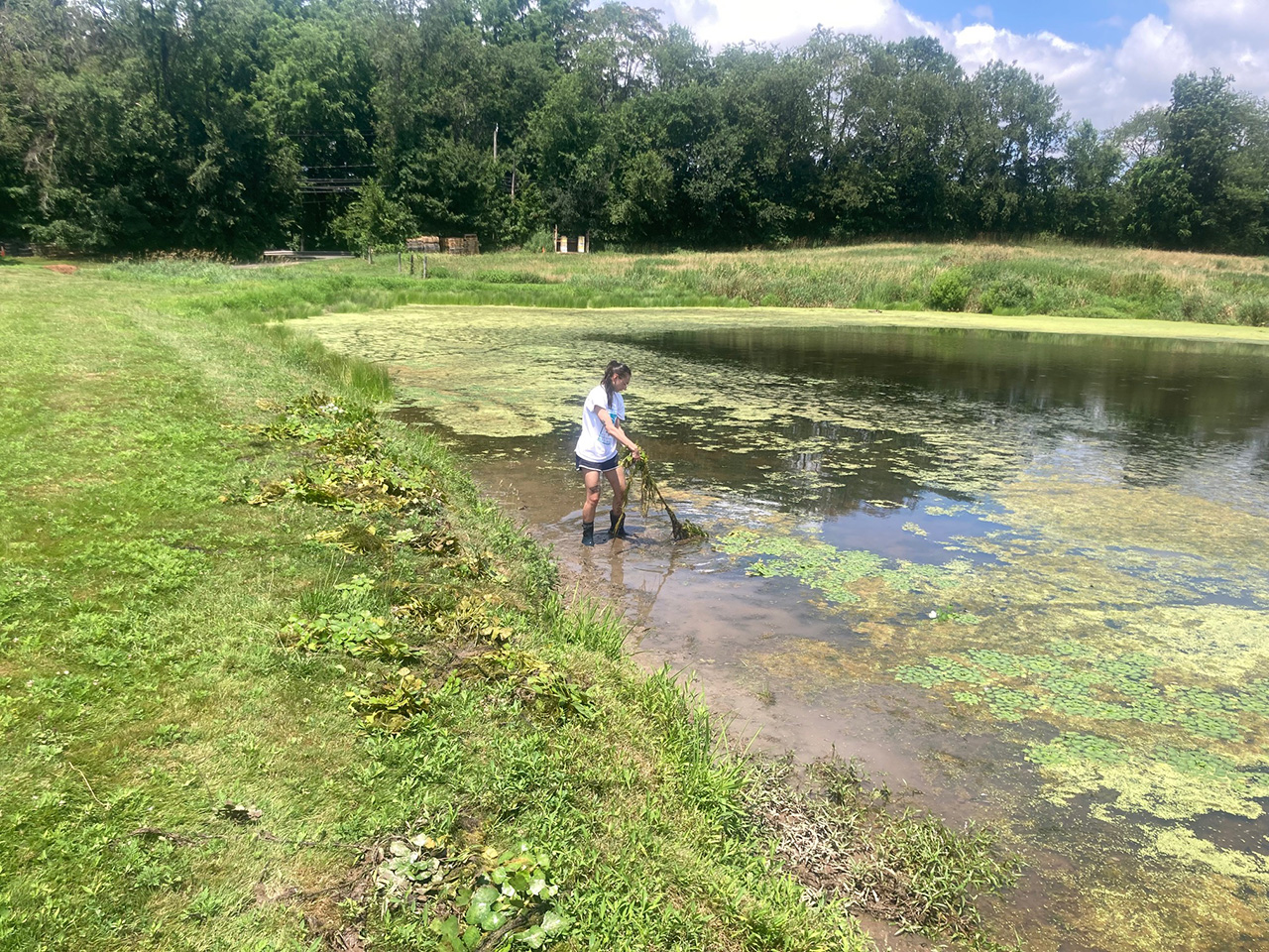 Trapa is a persistent and pernicious invasive aquatic plant. Its thorny “nuts” can remain viable in river and pond bottoms and sprout new plants up to 10 years after they drop. If untended, Trapa spreads rapidly creating dense mats of roots and vegetation transforming previously open water views into views more akin to a cabbage patch. Not only unsightly, but its thick mats also effectively evict the wildlife we love such as ducks, wading birds, fish, frogs and turtles.
